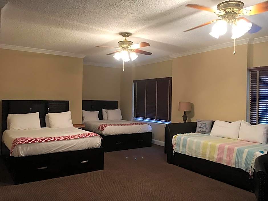 Offering free toiletries, this family room includes a private bathroom with a shower and a hairdryer. This wheelchair accessible family room has air conditioning, a seating area with a flat-screen TV and a shower chair. The unit has 4 beds.